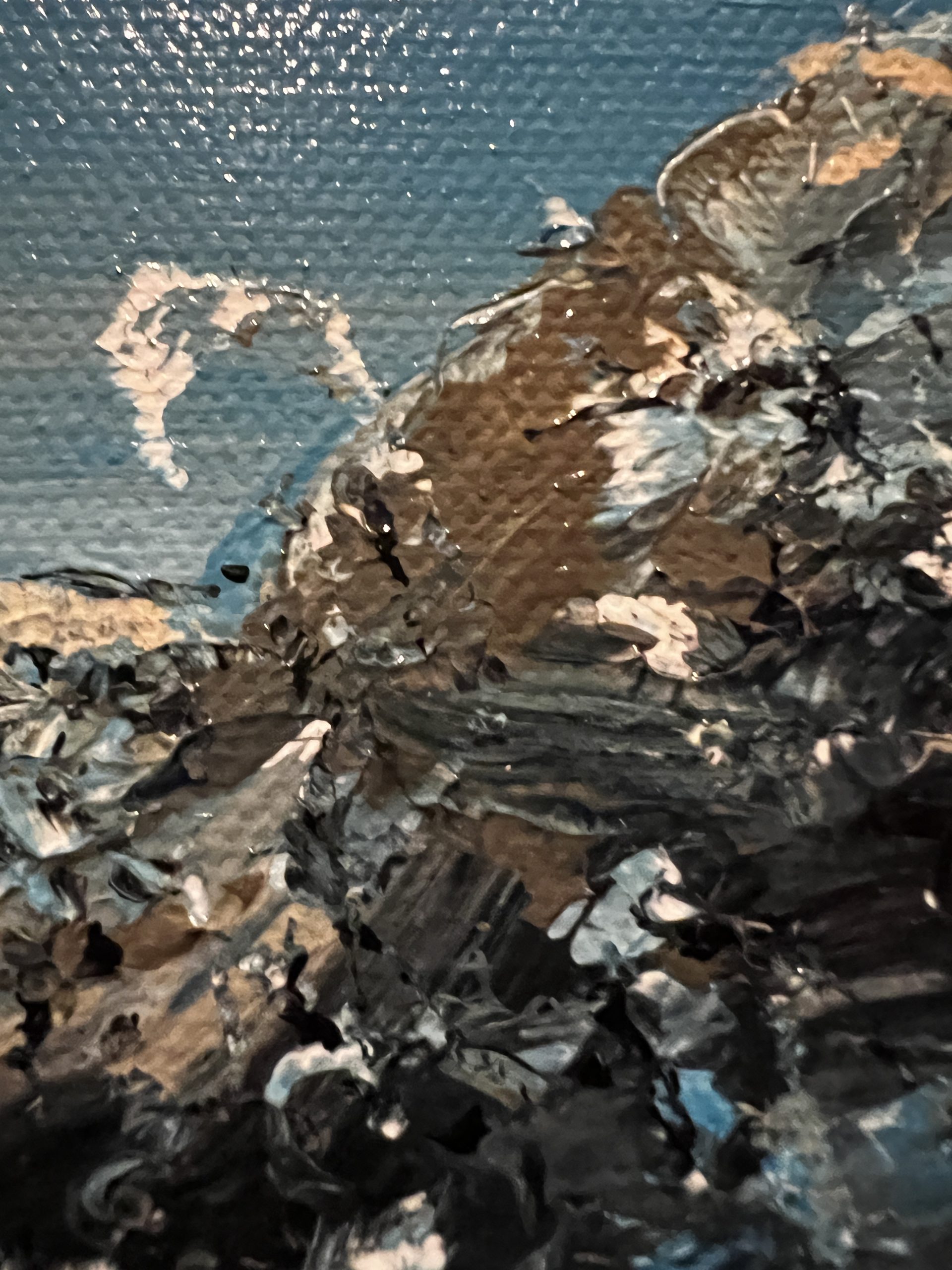A sweet little loose painting of an inlet somewhere in Tasmania, it portrays a sense of peace and serenity. Would go nicely in any spare spot in a study, bathroom (back is waterproof sprayed to stop mould), kitchen (can be wiped over with a damp cloth to clean),bedroom, hallway, man cave, lady cave .